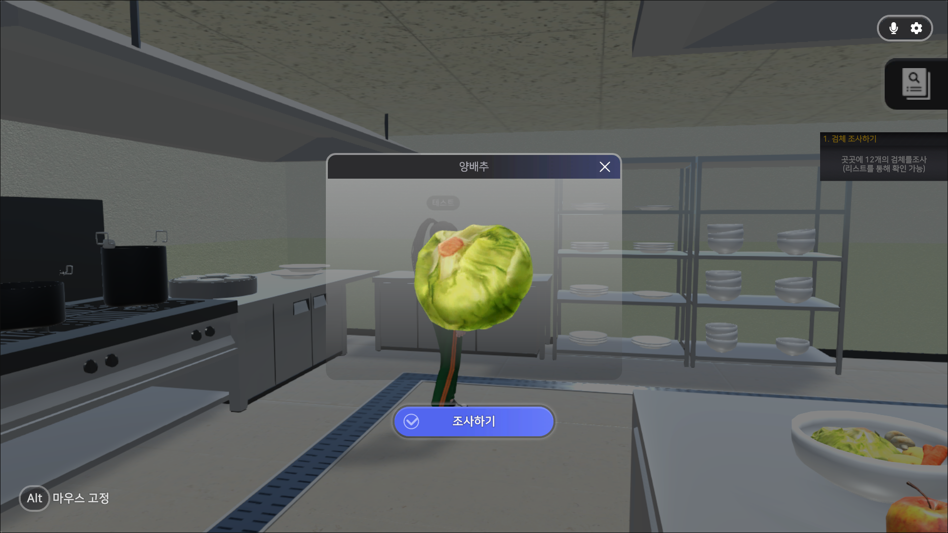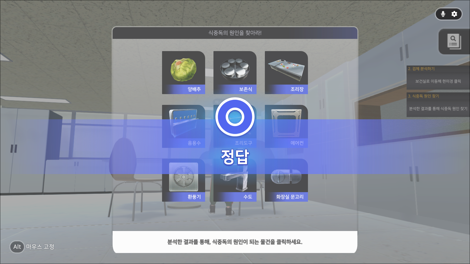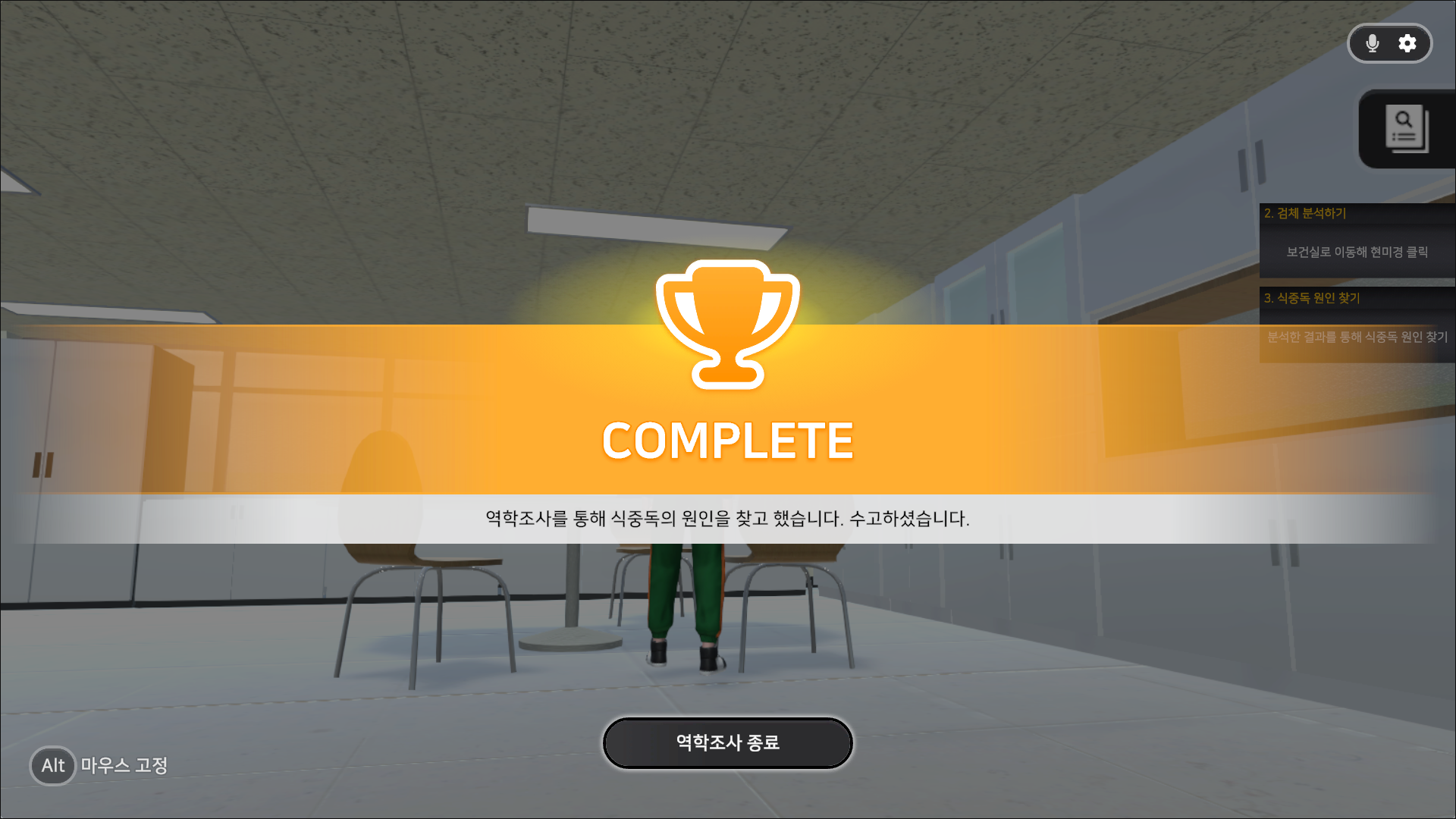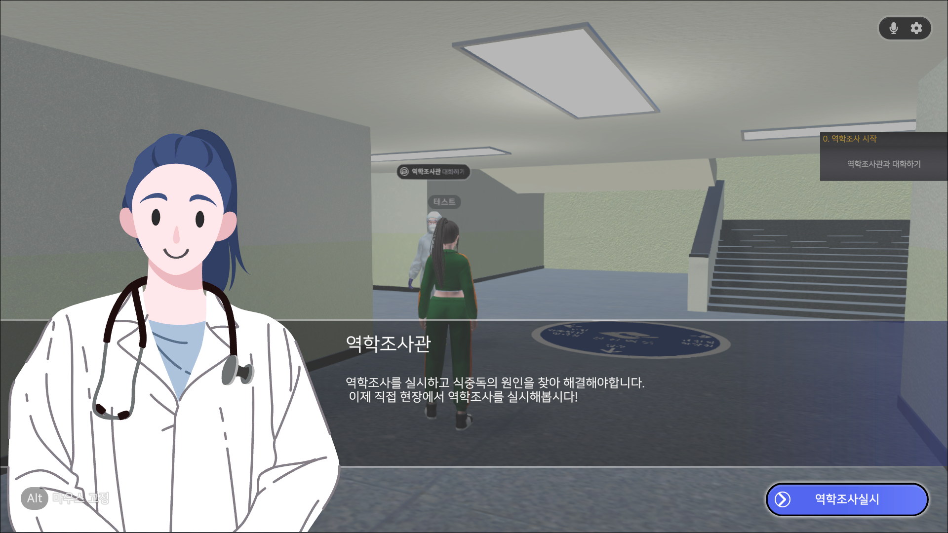 역학조사관이 되어 식중독이 발생한 현장에서 역학조사의 이론 학습 및 실습을 수행하는 시뮬레이션 콘텐츠