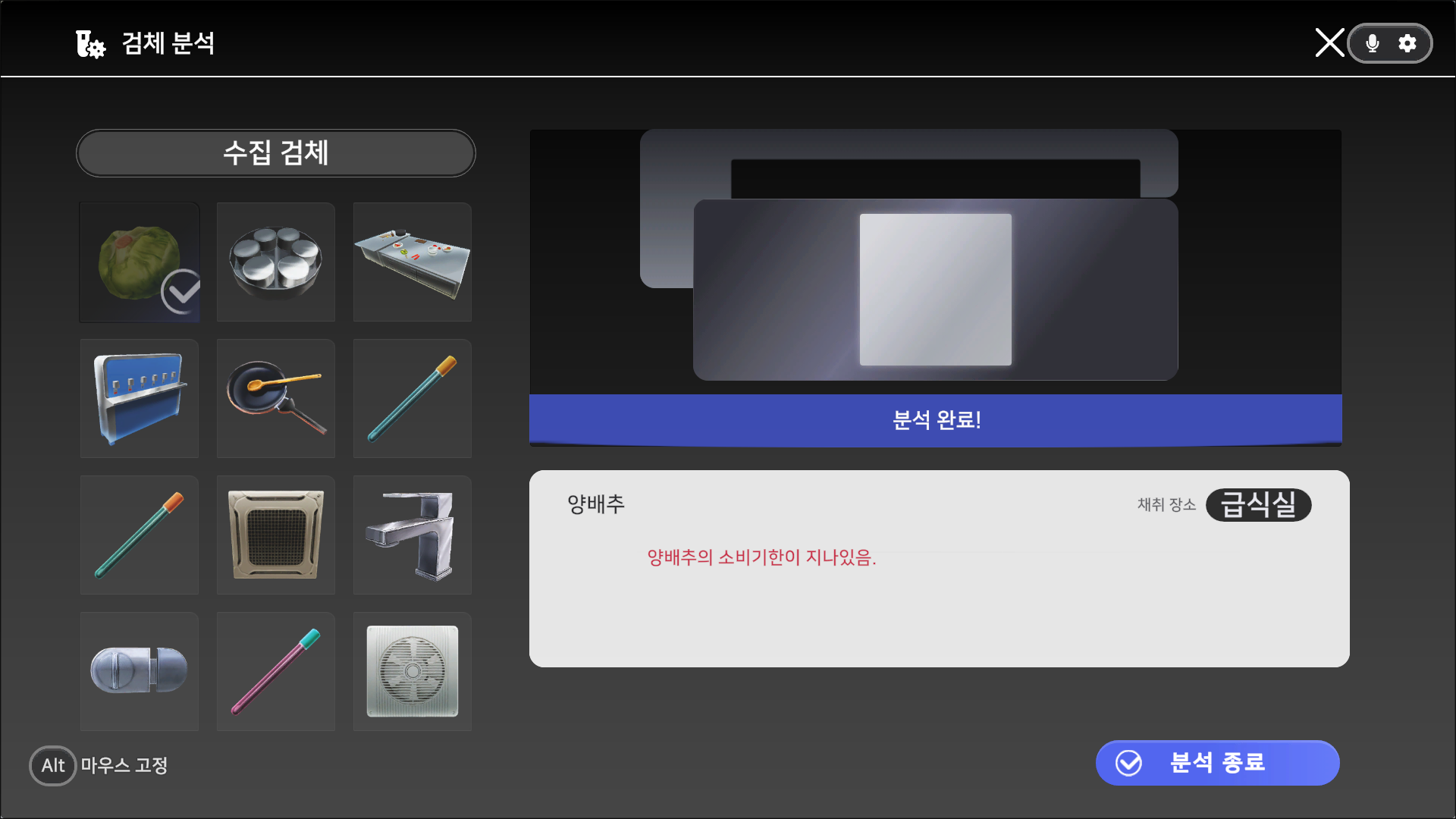 5. 원인이 되는 검체를 찾아 선택하면 게임이 종료됩니다.
